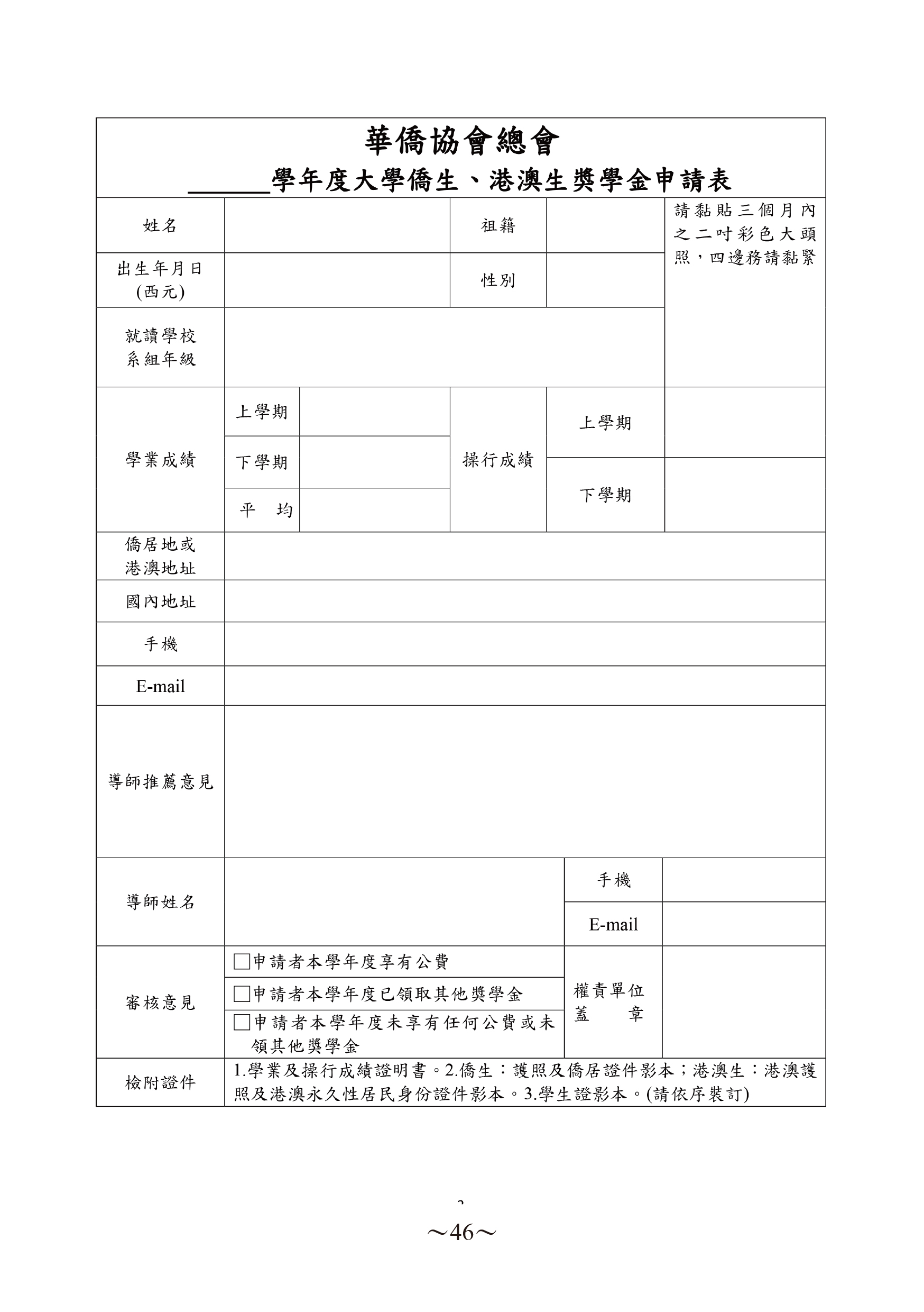 三、獎助學金及錄取名額:獎學金及助學金各2名。獎學金每名新臺幣20,000元整、助學金每名新臺幣10,000元整。 - 四、截止時間:請於114年9月26日(五)16:00前繳交完整申請文件至僑陸組,資料不齊及逾期恕不受理。
