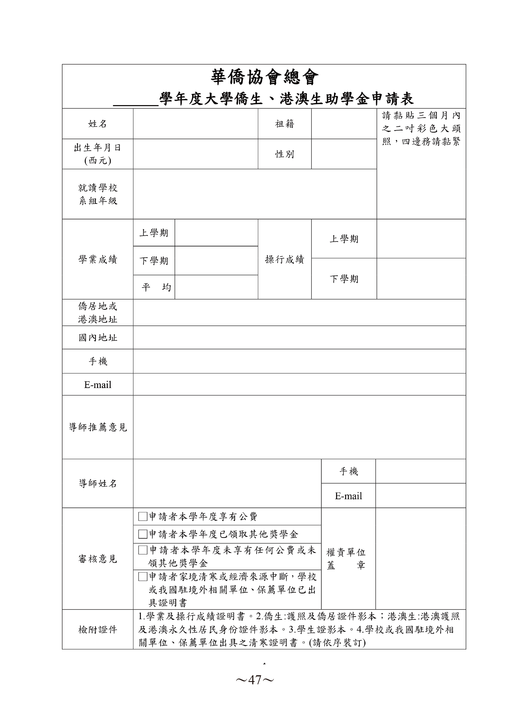 一、申請資格:(以下獎學金及助學金只能擇一申請)