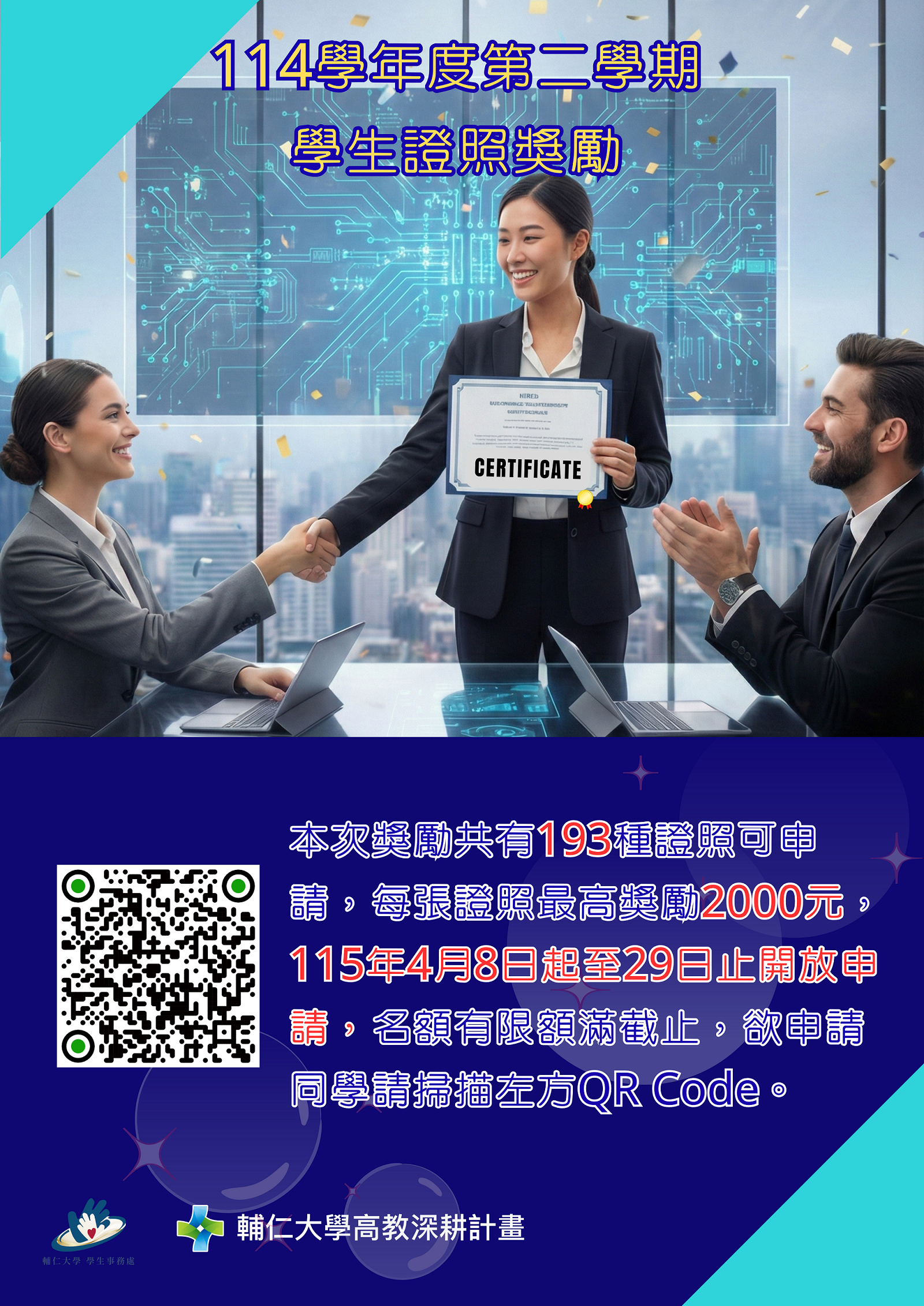 📣【轉知校內訊息】114學年度第2學期學生證照獎勵4/8起開始申請