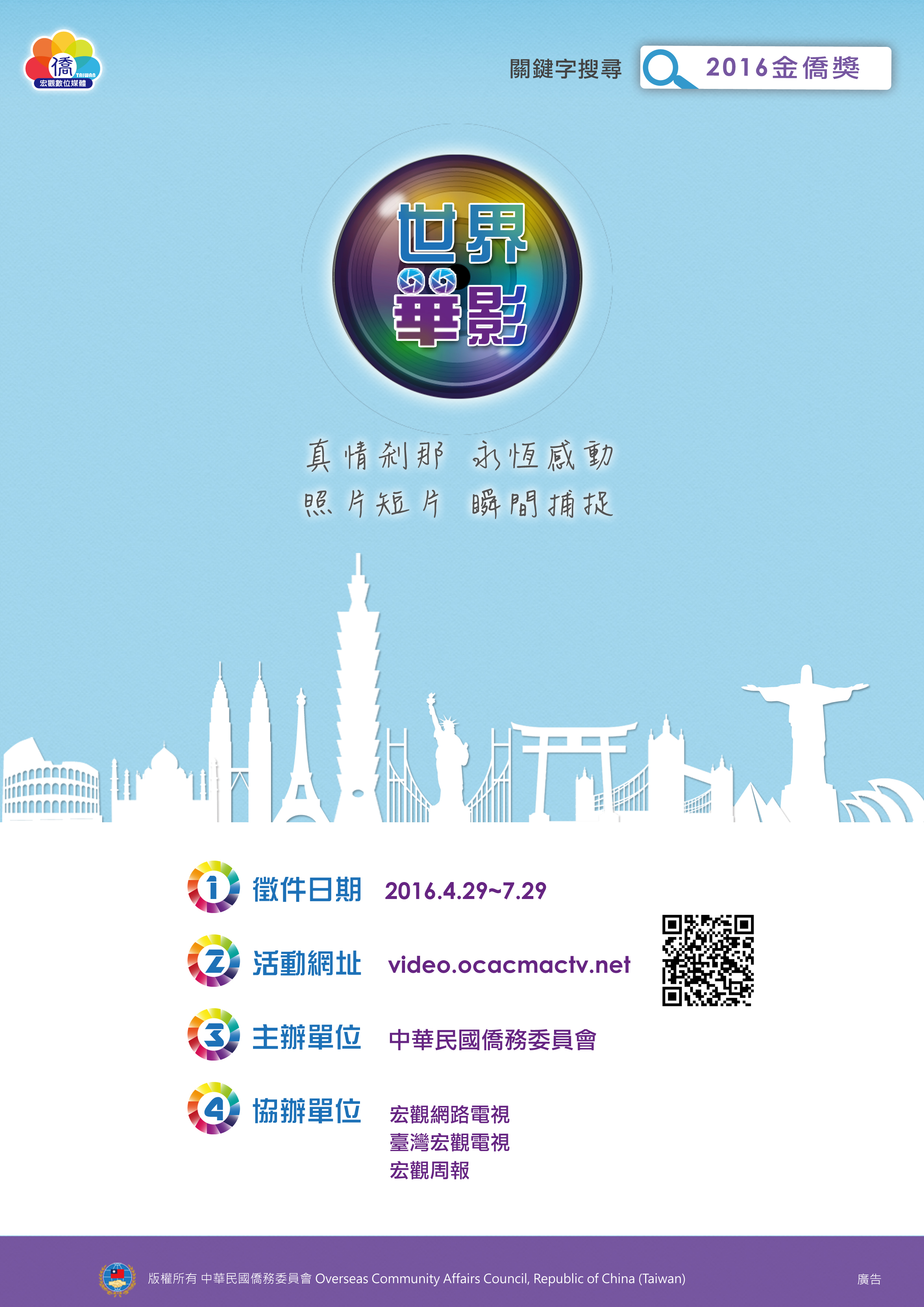 中華民國僑務委員會「2016金僑獎-世界華影」活動公告
