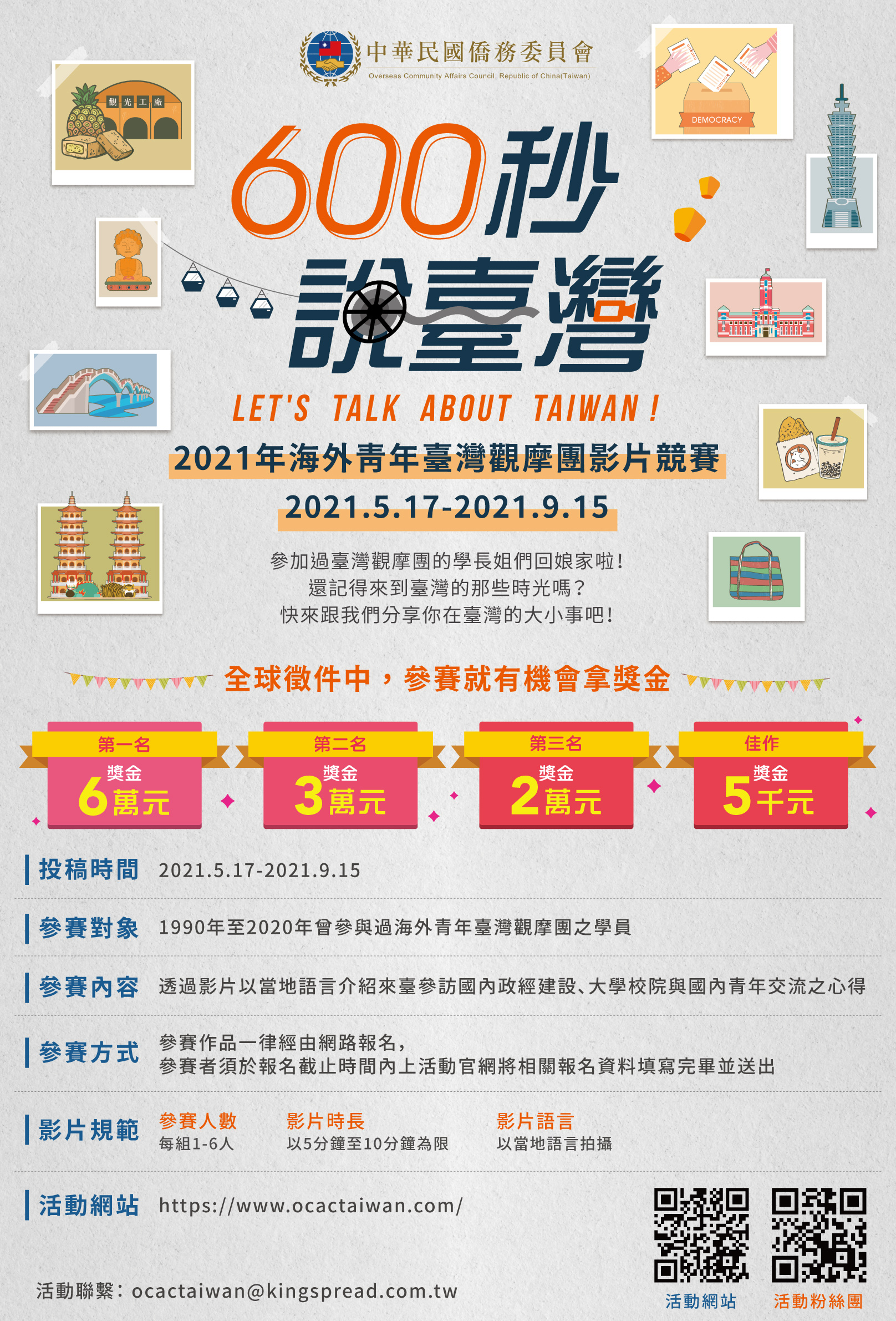 (五)獎勵:新臺幣5萬元獎金、獎座與獎狀,頭獎作品將作為「海外臺商精品」選拔暨輔導活動意象(標誌)。