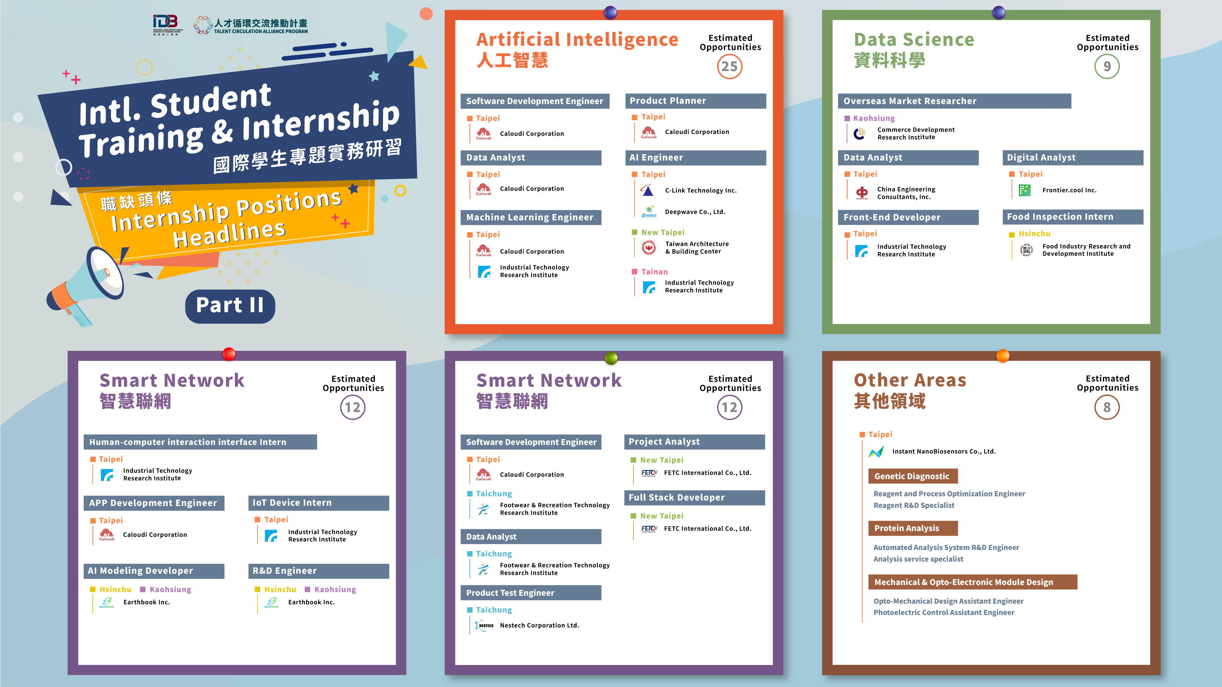 🔹研習職缺(Part II): https://www.facebook.com/talentcirculation/posts/794014728668711